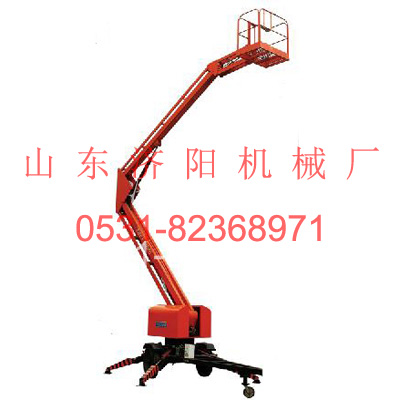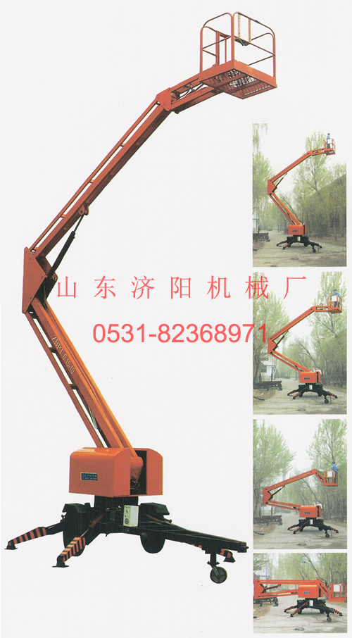 該系列升降機(jī)主要用于室外高空作業(yè)。折臂結(jié)構(gòu)緊湊,采用新型優(yōu)質(zhì)型鋼,強(qiáng)度高、重量輕、架設(shè)速度快,具有自動(dòng)液壓支腿,工作臺(tái)既可升高又可水平延伸,還可旋轉(zhuǎn)。可采用交流電源啟動(dòng),易于跨越障礙物到達(dá)工作位置,是理想的登高作業(yè)設(shè)備。該系列升降機(jī)廣泛用于市政、電力、路燈、公路、碼頭、廣告、廠礦車(chē)間大范圍作業(yè)。